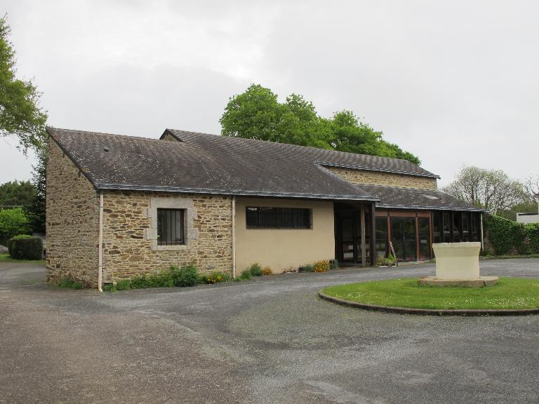 La municipalité étant mise en demeure de construire une mairie-école, cette construction est décidée en 1891 ; le projet est dessiné par Francis Le Ray architecte à Redon, en décembre 1891, pour la somme de 13570 fr. Elle sera établie sur la parcelle B42, au lieu-dit « le camp », préalablement pressentie pour la construction d’une école de filles en 1883, projet dont le plan établi par l’architecte départemental Maigné n’avait pas abouti. Au sud de cette parcelle, le long de la route figurait cependant sur le plan cadastral de 1840 une maison en ruine et une autre maison sans doute disparue avant le projet de construction de l’école de filles.