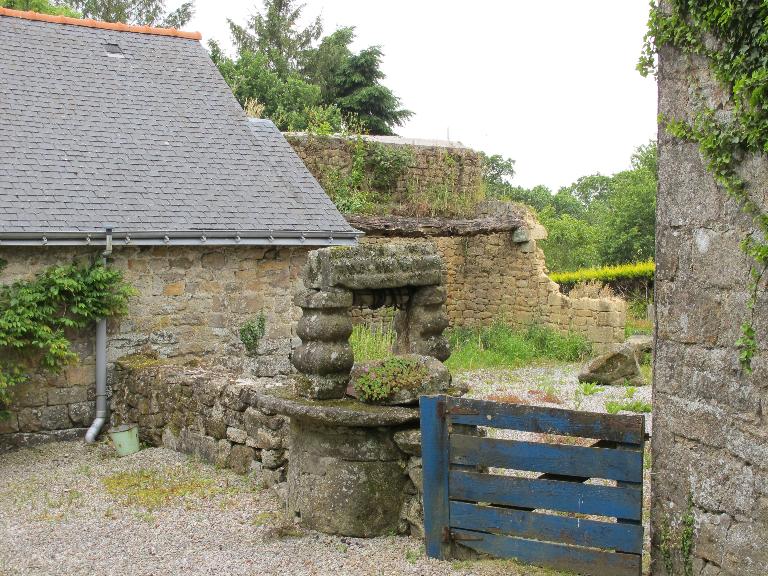 Le village de Langoëlan se présente comme un village rue : la plupart des maisons sont orientées est ou ouest selon leur position par rapport à la route. Seules échappent à cette orientation les maisons autour de l'église, ainsi que celles proches du presbytère qui constituent le noyau le plus ancien du village. Proche du presbytère, la fontaine de l'église est à l'état de vestiges, enserrée dans du goudron.