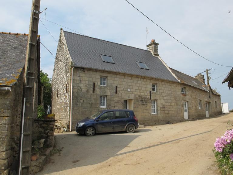 L'étable en prolongement vers l'est est un peu plus ancienne : il s'agit d'un ancien logis-étable. Les deux parties ont été reliée après 1842 et le logis-étable a alors perdu son rôle d'habitation. Depuis l'enquête de 1967, des fenêtres en ciment ont été ouvertes au nord du logis, puis l'étable est devenue logis, entrainant la modifications des ouvertures (disparition de la porte en plein cintre, agrandissement de la fenêtre gauche).