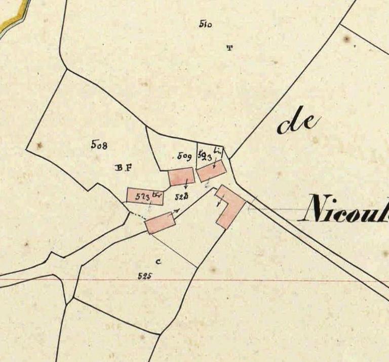La grange en retour au nord-ouest est datée 1868 : elle ne figure pas sur le plan de 1842.
