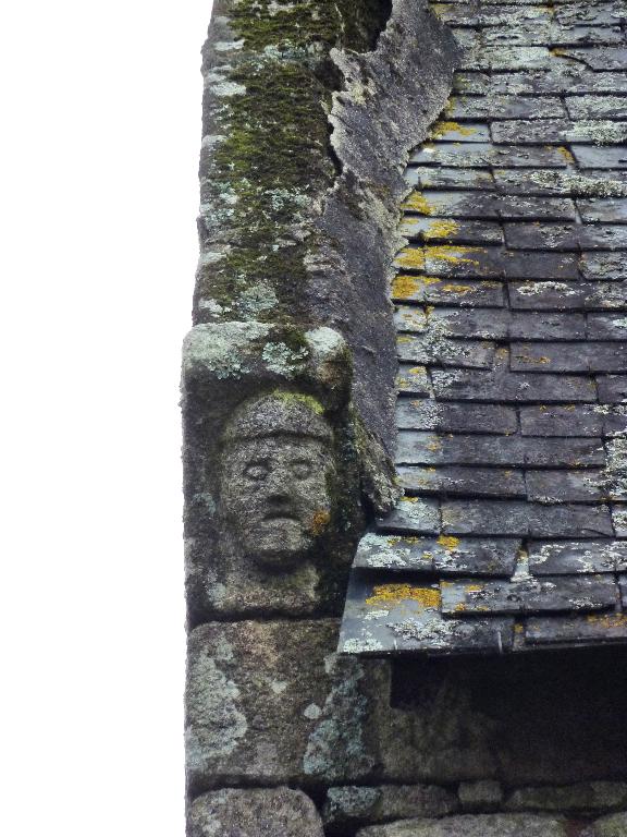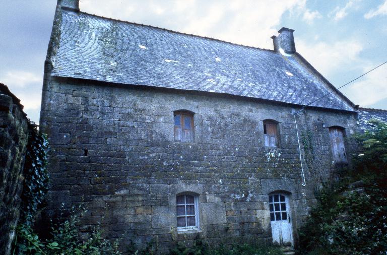Seul le rez-de-chaussée de cette maison servait à l’habitation. Le second niveau, malgré son importance, n’abrite qu’un grenier, accessible par un escalier extérieur. La souche factice du pignon ouest fait illusion et renforce l’idée d’un étage habitable. Ce souci d’ostentation est encore accentué par l’élévation à deux travées, inspiré des modes urbaines. Les linteaux des baies en arc segmentaire sont caractéristiques de la fin du 18e siècle, époque de construction de la maison. (J. Tanguy)
