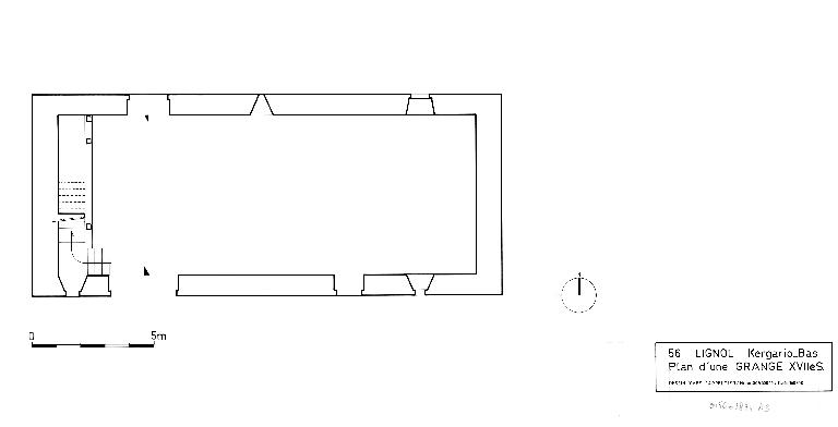 La forme de cette grange, avec porte charretière percée dans le mur gouttereau et non en pignon comme habituellement dans les fermes morbihannaises, ses dimensions renforcent aussi son statut de grange exceptionnelle. On soulignera sa parenté avec celle toute proche de Penderff, contemporain, dont le manoir ancien a aussi disparu. Il est probable qu'elles soient œuvre d'un même constructeur, la famille Barisy étant propriétaire des deux lieux à la fin du 17e siècle. (C. Toscer)