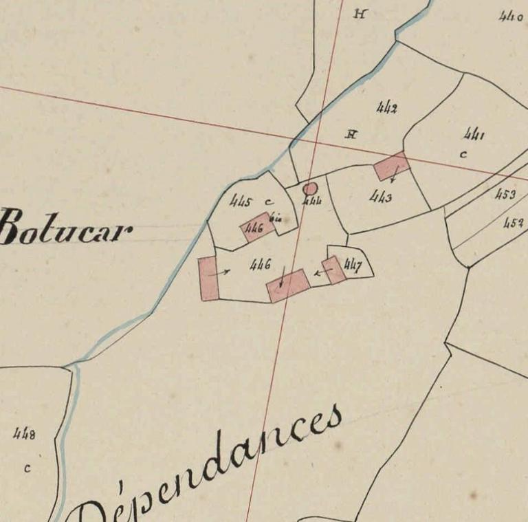 La dépendance en retour a été construite au début du 20e siècle, remplaçant un bâtiment plus petit et non jointif du bâtiment principal figuré sur le plan de 1841. Le four à pain représenté sur ce même plan a disparu. Il a été remplacé par un four au bout de la remise ouest, actuellement en ruines.