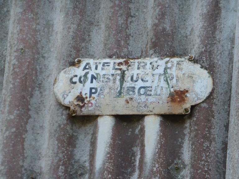 Le bâtiment porte sur son pignon une plaque émaillée des Chantiers de construction de Paimboeuf.