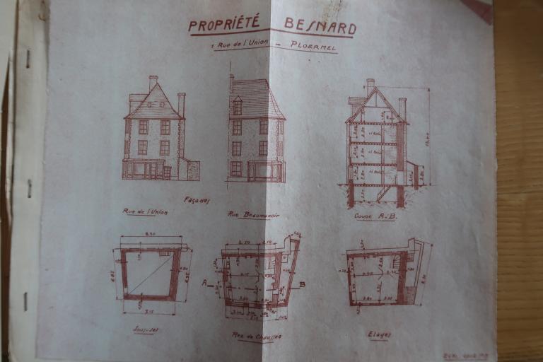 L'autre angle entre la rue Beaumanoir (actuel n°11) et la rue du 12 juin 1944 était occupé par une maison en pan de bois dont les débris sont visibles sur l'orthophoto de 1947. Des archives indiquent qu'il s'agirait d'un bâtiment construit en 1825, cédé en 1856, en 1898 puis en 1911 avant sa destruction partielle en 1944. Il abritait une librairie-papeterie au rez-de-chaussée et servait d'habitation à l'étage (AD 56 : 7W2968). Les plans de l'édifice indiquent une cave, des cloisons internes en bois, un rez-de-chaussée maçonné et deux étages en pan de bois sans encorbellement. La façade arrière était entièrement maçonnée et le mur mitoyen côté Beaumanoir comportait une cheminée. Aspect extérieur : enduit avec imitation de chainages d'angle. Ouvertures alignées et lucarne sur la rue Beaumanoir.