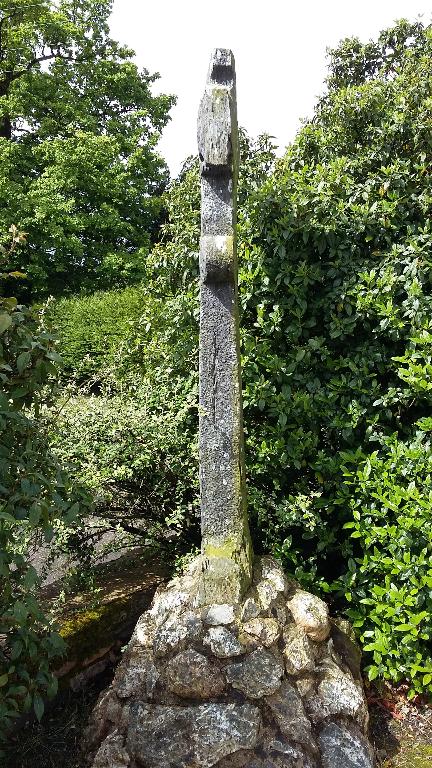 Croix palis, monolithe, redentée. Le fût rectangulaire possède deux lobes en partie haute. Croix plantée dans un monticule de pierres maçonnées au ciment. La partie du fût qui s'enfonce dans le monticule est plus large. Cette partie cachée est raccordée au fût par un biseau.
