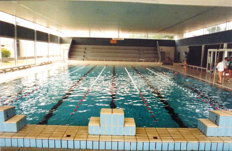 Le programme initial se composait d'installations couvertes (un bassin de 25 m sur 12,50 m doté de 4 couloirs d’une profondeur variant de 1m20 à 1m80 ; un bassin d’apprentissage de 12,50 m sur 10 m et des annexes : vestiaires, sanitaires, gradins, bar…) et d'équipements de plein air (un bassin sportif de 50 m sur 15 m de large avec une profondeur variant de 1m20 à 1m80 ; une fosse à plonger de 12 m de côté avec une profondeur de 3m90, équipée d’un tremplin de 1 à 3 m avec une plate-forme de 5 m ; une plage périphérique carrelée aménagée au pourtour du bassin et de la fosse à plonger). Le bassin extérieur a été désaffecté au début des années 1990 et la piscine couverte a connu en 2004 une importante rénovation (charpente, plafonds, éclairage).