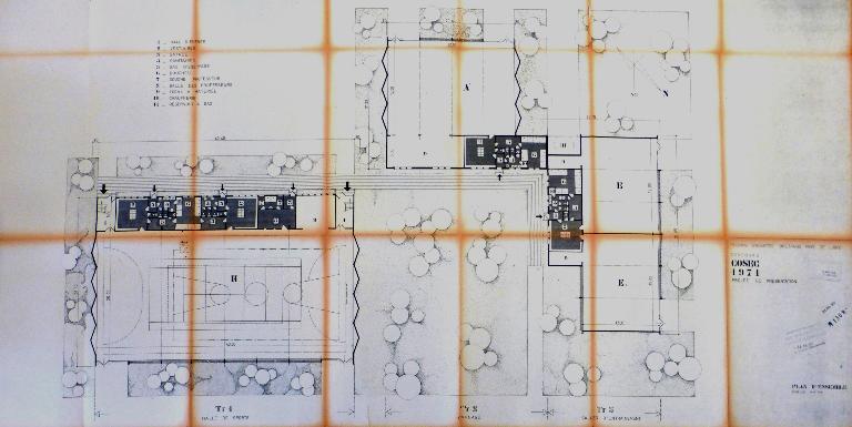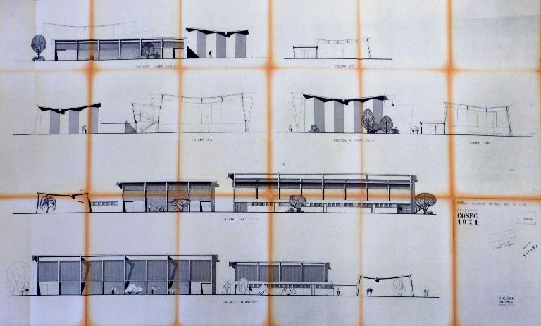 L'avant-projet prévoyait un COSEC complet avec une halle des sports H, une salle A' et deux salles E. Seule la première a été construite.