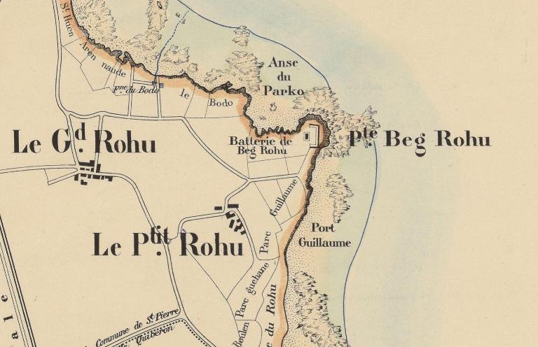 Le corps de garde complète la batterie de Beg Rohu, réorganisée en 1860-1861. En février 1861 il est achevé jusqu'à hauteur de la terrasse. Il est complètement achevé à la fin de l'exercice 1861.