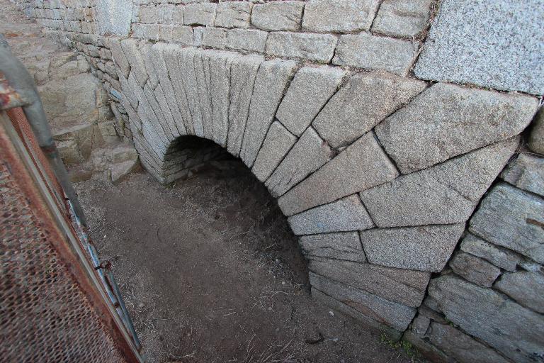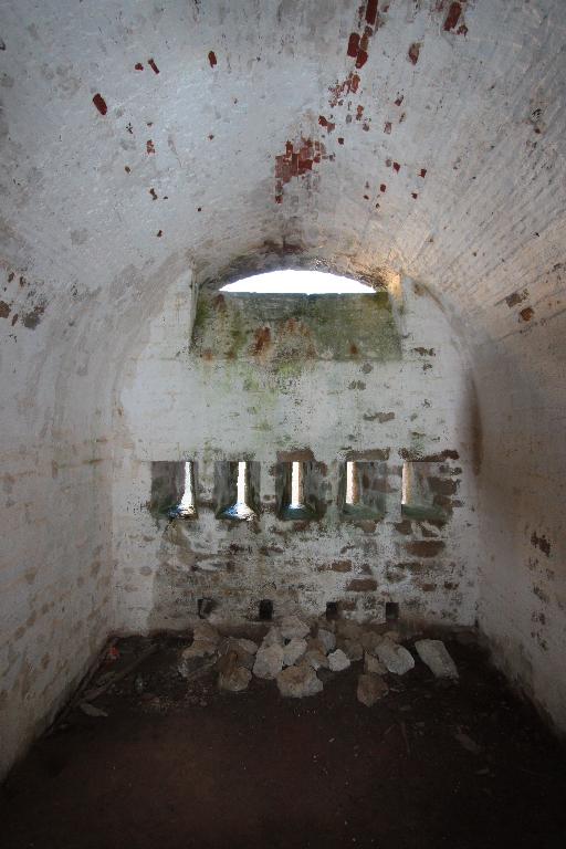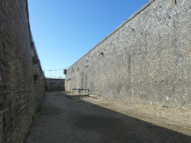 Les fossés du Fort et de la caserne sont taillés dans le roc vif ; les maçonneries sont en granit ; les terrassemens sont en sable revêtu de gazons ; les communications intérieures du fort sont faciles et bien conçues. Il y a deux barrières pour le camp retranché ; une porte avec pont-levis pour entrer dans l'enceinte bastionnée et une autre porte pour entrer dans le réduit de sûreté ; quatre souterrains, deux casemates, l'une de 27,50 m de long sur une largeur moyenne de 2,50 m, l'autre, de 39 m de long en trois galeries parallèles qui ont une largeur moyenne de 3 m.