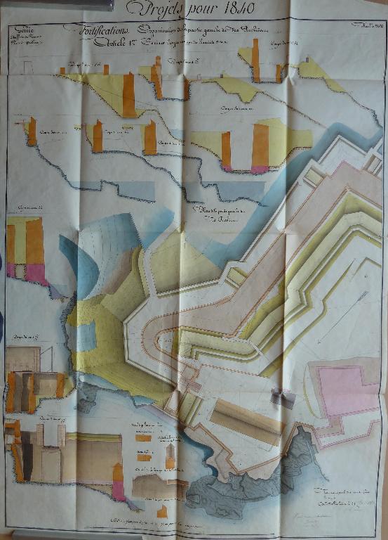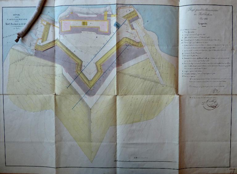 L'escarpe du Fort est presque terminée, la contrescarpe est à peine commencée, les terrassemens sont en commencement ; quant aux chemins couverts et à la lunette n° 14, il n'y a encore aucun projet pour leurs modifications et réparations.