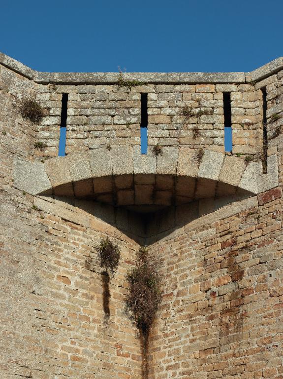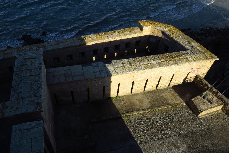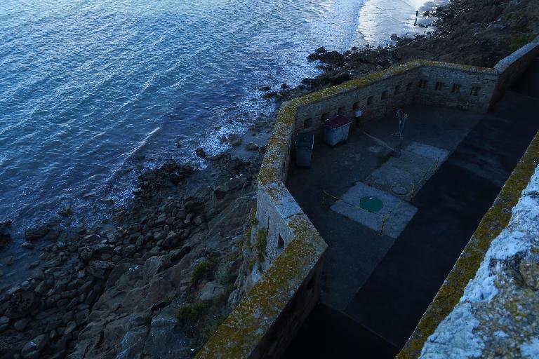 La première batterie sert à éloigner les navires qui viendraient pour insulter le Fort, et protège le port d'Orange ou St-Pierre, en croisant ses feux avec la batterie de Beg-Rohu.