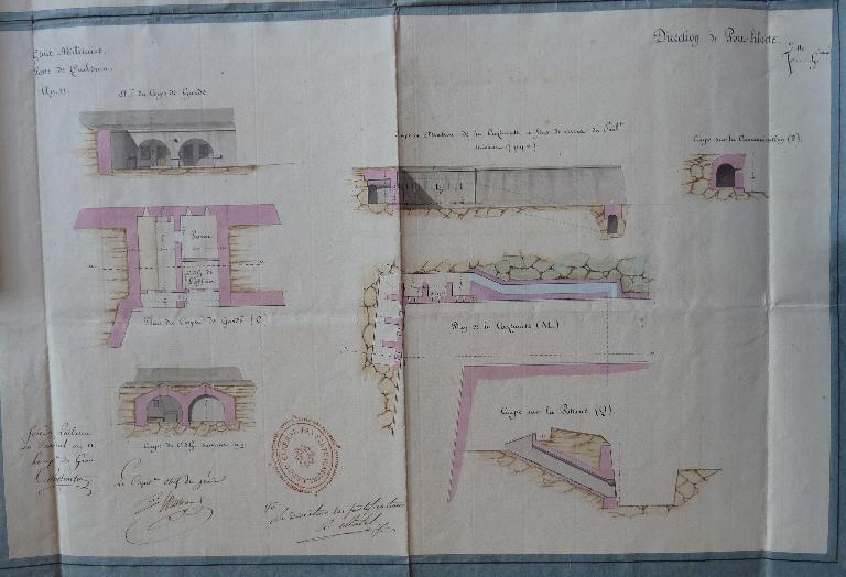 (Service historique de la Défense, département Armée de Terre, Vincennes. Archives de l'Artillerie ; Sous-série 3 W, Opérations militaires : 3 W 58, Documents particuliers à la Direction de Brest. Direction d'Artillerie de Nantes. Fort Penthièvre. Presqu'île de Quiberon. Mémoire, 25 mars 1847)