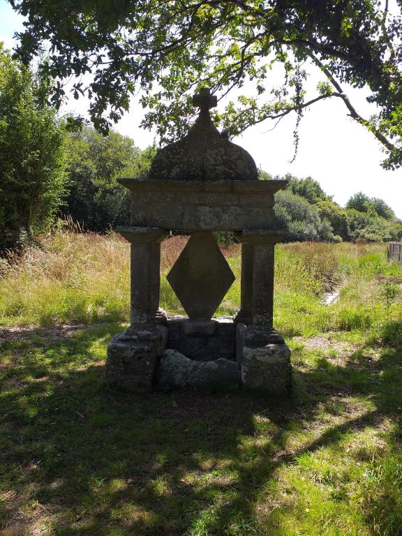 Quelques fontaines de dévotion présentent un langage architectural proche du mausolée, telles que la fontaine Sainte Avoye (Pluneret), Sainte Anne Grappon (Surzur) ou la fontaine Saint Jean (Crac'h), où pour cette dernière l'élément architecturé est situé au centre d'un bassin carré dallé desservi par deux escaliers. La fontaine Kerisper à Pluneret, dont la fonction de dévotion n'est pas attestée, montre également un profil architectural rappelant celui du pilier funéraire.