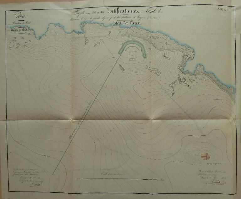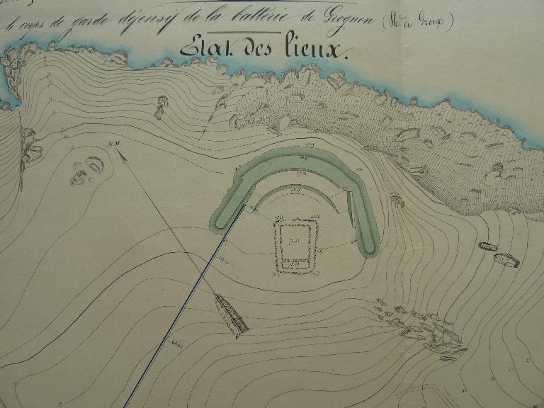 La batterie du Grognon fait partie des ouvrages conservés à Groix par la "Commission mixte d'armement des côtes de la France, de la Corse et des îles" de 1841 avec les batteries du Gripp et de Nosterven et le fort Lacroix. L'armement attribué par la commission est de trois canons de 30 livres et trois obusiers de 22 cm. Cet armement est modifié par la commission de défense des côtes de 1859 qui remplace une de ces pièces par un mortier de 32 cm destiné à croiser ses feux avec la batterie du Talud, sur le continent. Un corps de garde crénelé doit servir de réduit. Les travaux commencent en 1848. En 1851, la réorganisation du parapet de la batterie est achevée. Les excavations pour fonder le corps de garde sont faites, mais l'achèvement des travaux est ajourné faute de fonds. Le corps de garde crénelé pour 30 hommes n'est construit qu'en 1859-1860.