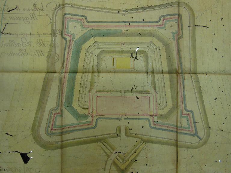 C'est un bâtiment organisé sur trois niveaux plus la terrasse crénelée, et cinq travées voûtées principales contrebutées par deux séries de trois locaux voûtés transversaux à chaque extrémité. Sa contenance est d'environ 250 hommes et six mois de vivres.