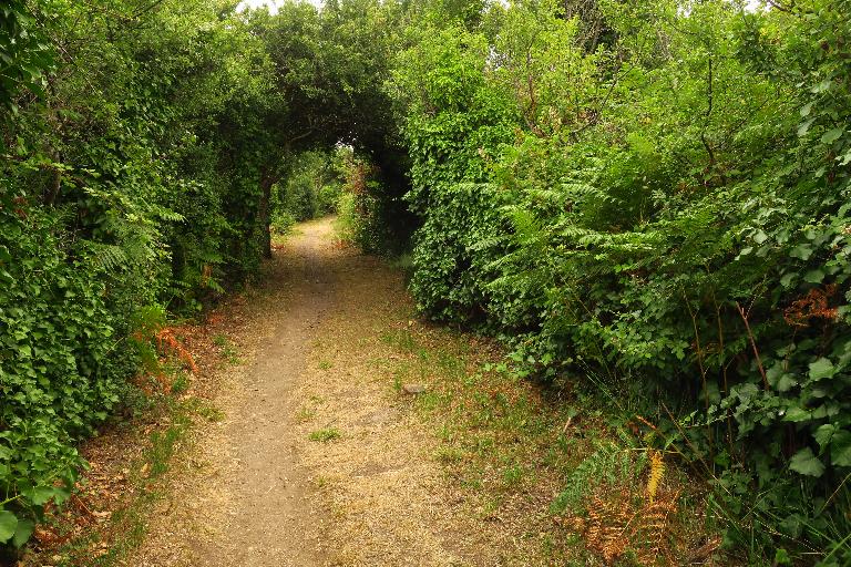 La batterie est actuellement complètement envahie par la végétation. Le sentier côtier passe sur la plongée du parapet.