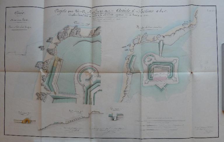 • Service historique de la Défense, département Armée de Terre, Vincennes. Archives du Génie ; Article 12, Avis du Comité : 1 VK 41, Mémoires généraux sur les frontières maritimes, 1853-1885. Rapport sur la situation des travaux de défense des côtes à la fin de l'exercice 1861.