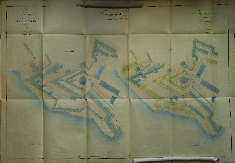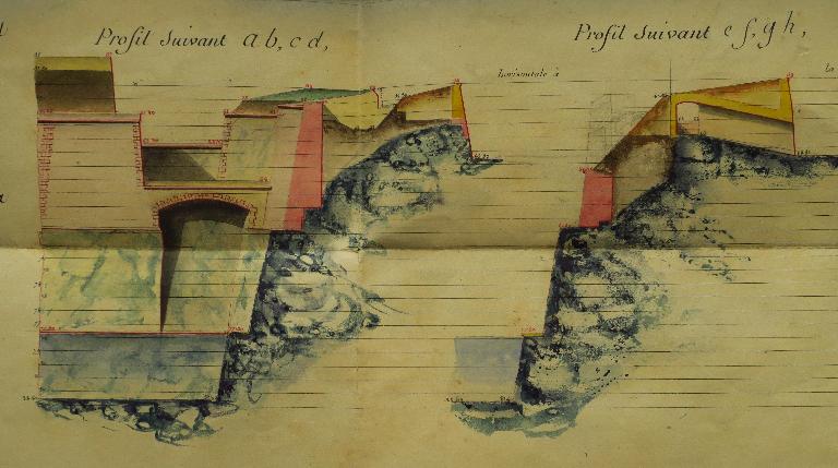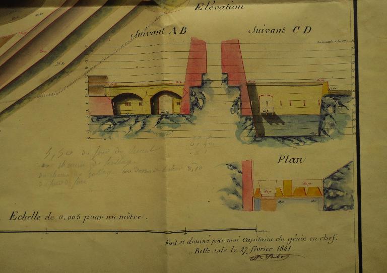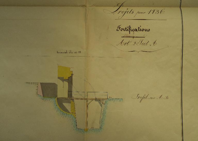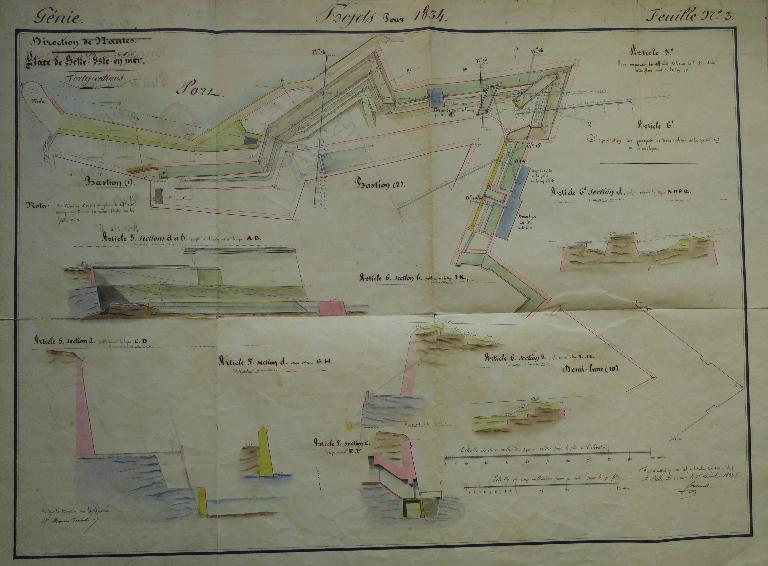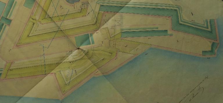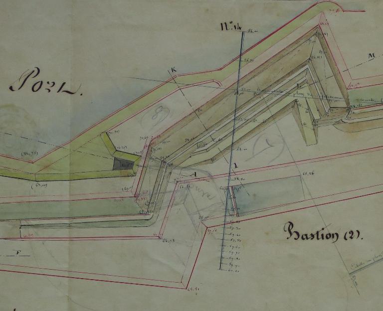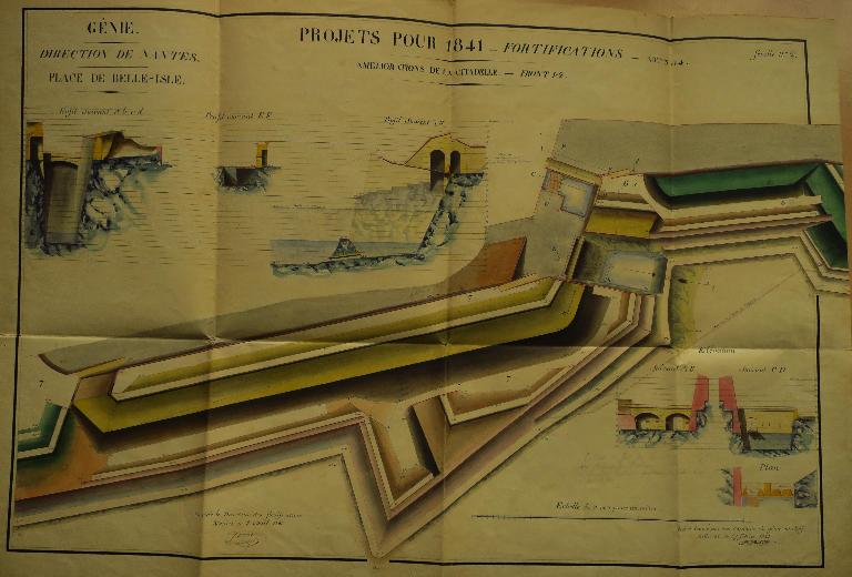 Les fronts sud de la citadelle, partie la plus exposée, lieu de la brèche lors du siège de 1761, font l'objet de nombreux projets de remaniement durant la première moitié du 19e siècle. La nécessité de couvrir les escarpes des bastions 1 et 2 et de leur courtine par des terrassements est alors reconnue, de même que celle de la mise en sûreté de la trop accessible fausse-braie existant devant le front 1-2.