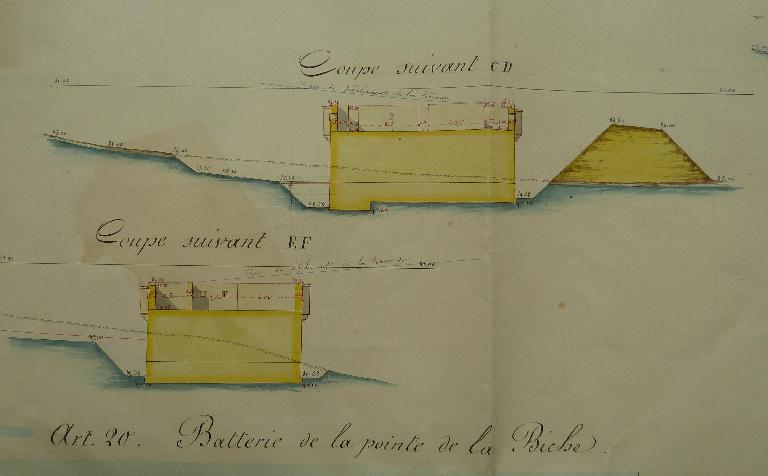 Le réduit attribué par la Commission de défense des côtes de 1841 à la batterie de la Biche est un corps de garde crénelé n° 3 pouvant accueillir les 20 servants de la batterie. Son intégration au site ne pose pas de problème majeur aux ingénieurs militaires, hormis sa domination par les hauteurs alentours qui font opter pour l'installation de murs-traverses en maçonnerie sur sa terrasse.
