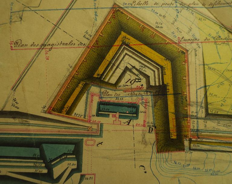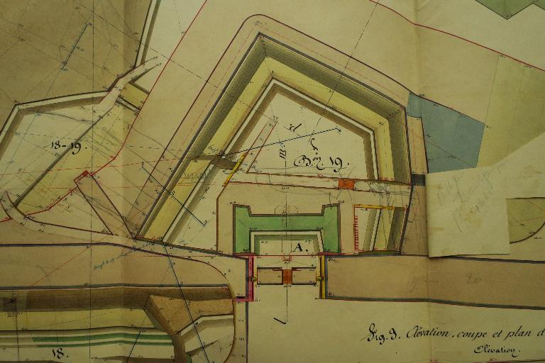 Le bastion 19 sous sa forme actuelle est construit de 1861 à 1863. Ses terrassements sont réaménagés à la fin du 19e siècle, vers 1880-1890. Un magasin à poudre est construit vers la même époque sous son terre-plein.
