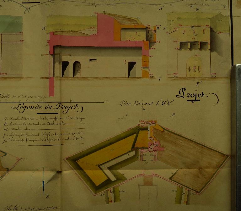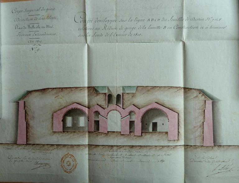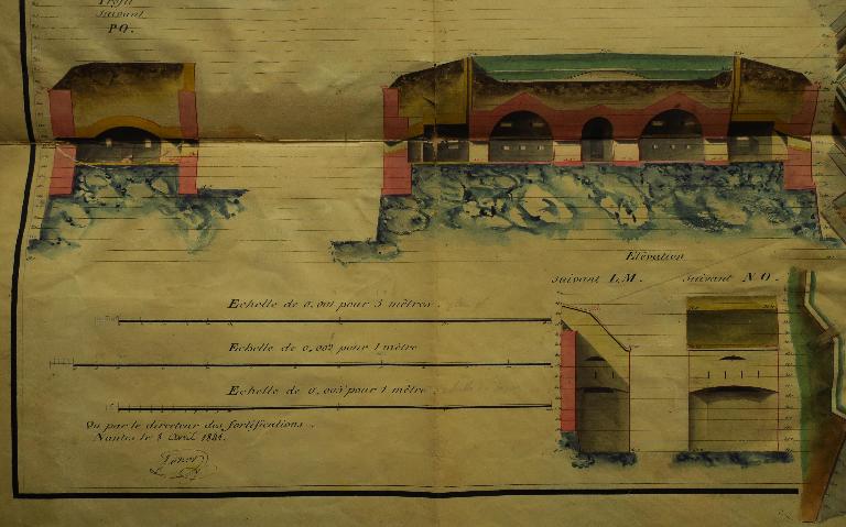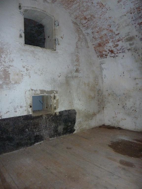 Chaque aile est constituée d'une grande travée voûtée en berceau plein-cintre faisant toute la largeur du bâtiment et d'une petite pièce logée contre la façade frontale. De chaque côté, un escalier en spirale partant de la galerie centrale permet d'accéder à la terrasse. Les deux escaliers débouchent côte à côte sur la terrasse. Les travées principales communiquent par des portes avec la galerie centrale et les petites pièces frontales. La travée de droite est divisée en trois espaces, dont un magasin à poudre organisé selon les normes spécifiques de ces locaux. Les petites pièces frontales sont prévues pour être divisées horizontalement par un plancher.