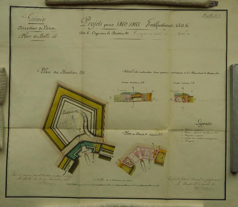 Le passage central est le seul accès au bastion 20 depuis l'intérieur de la place. Il est fermé à ses deux extrémités par une porte. La porte de la façade de gorge était précédée d'un pont-levis à flèches. Des encoches pratiquées dans les maçonneries de part et d'autre de la porte frontale permettent de la barricader au moyen de madriers.