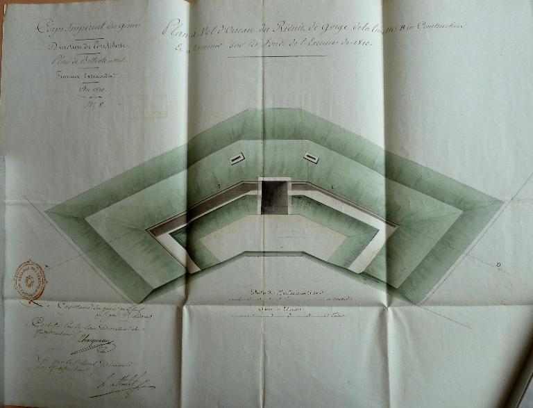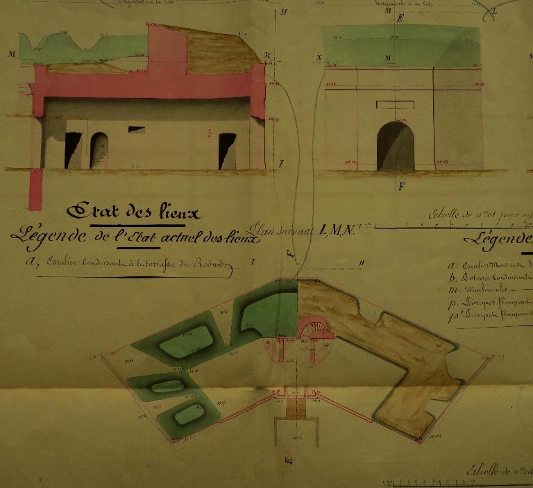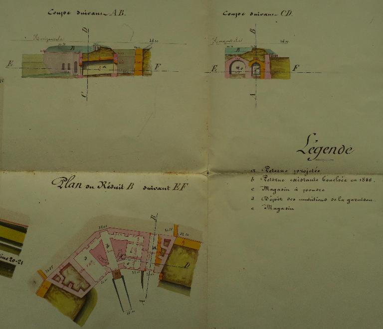 Le réduit B ferme la gorge du bastion 20. C'est un bâtiment voûté à un niveau plus une terrasse munie d'un parapet en terre, dont les deux ailes sont disposées selon un angle ouvert de part et d'autre d'un passage central.