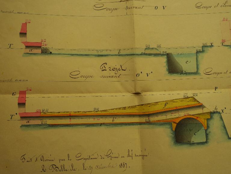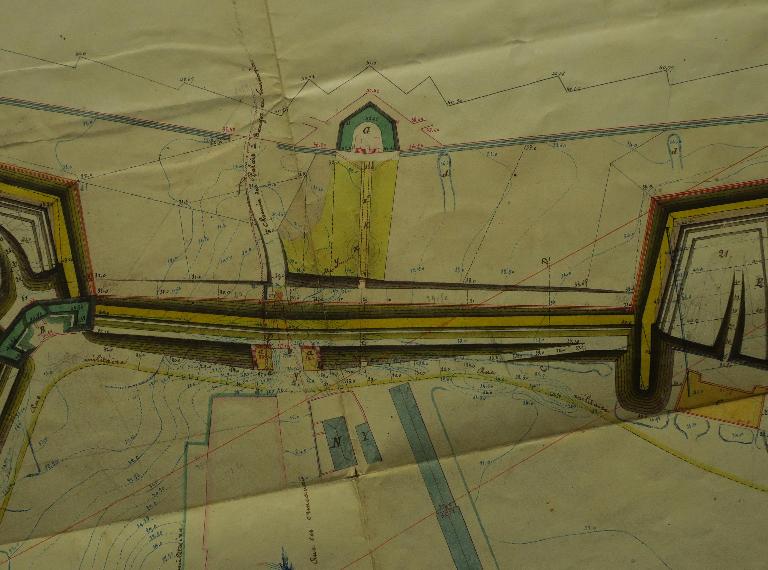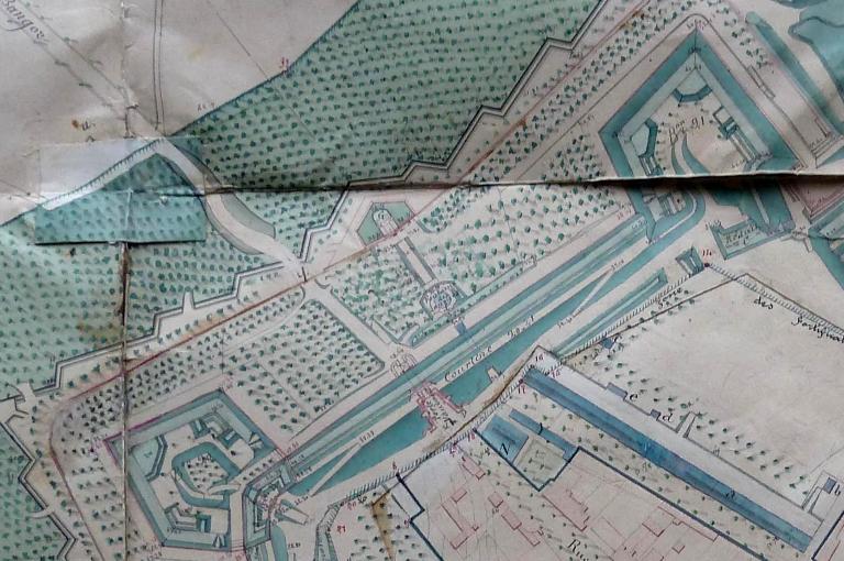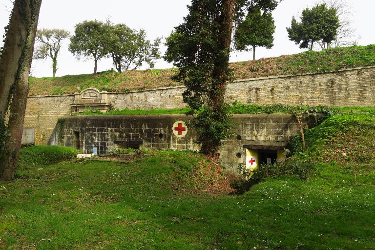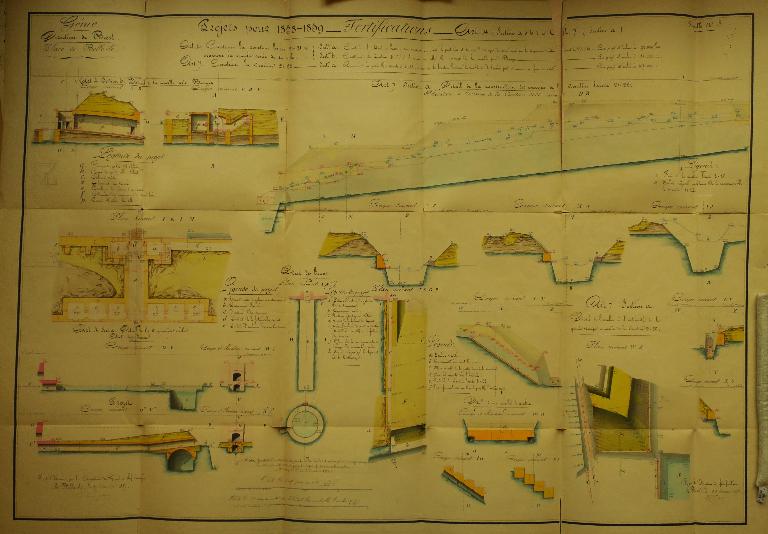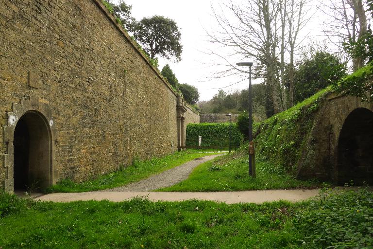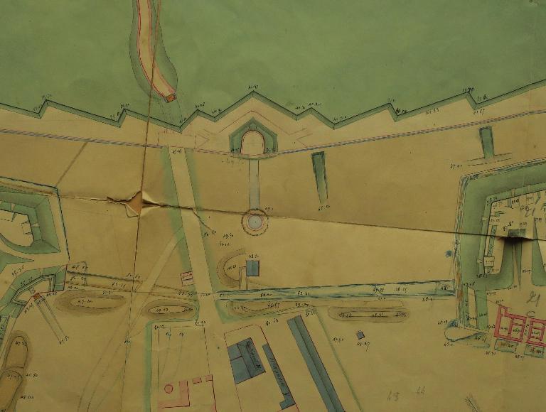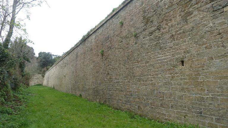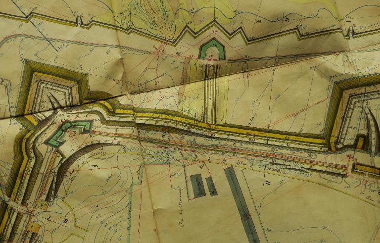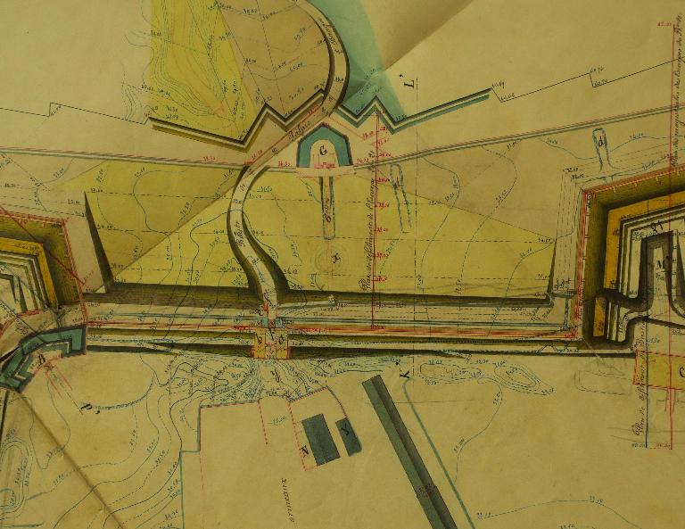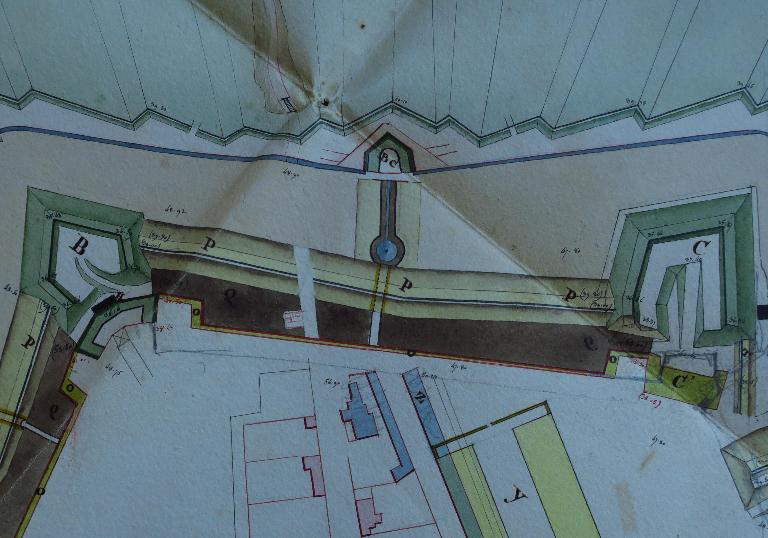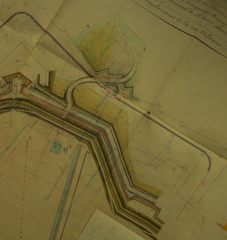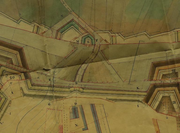 Une courtine reliant les ouvrages B et C hérités des travaux de l'Empire - futurs bastions 20 et 21 - est prévue dès les premiers projets de fermeture de la place du Palais dans les années 1820. Sa forme envisagée évolue selon les nombreux projets étudiés jusqu'au début des années 1860. Une amorce de fossé est néanmoins creusée à l'occasion de la crise diplomatique européenne de 1840.