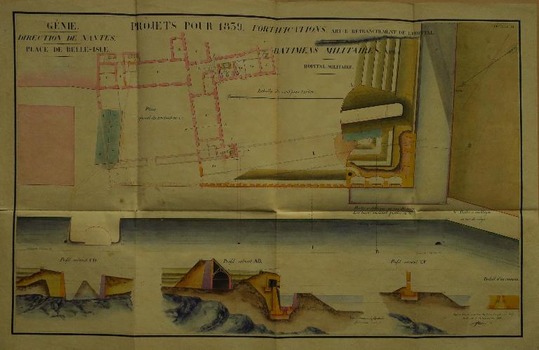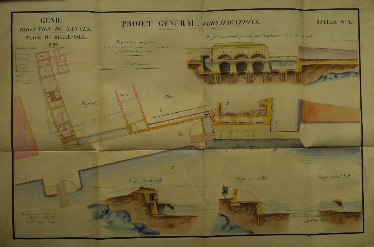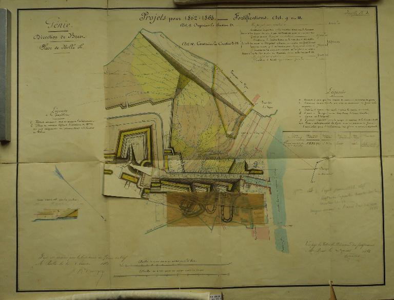 La fermeture de la place du Palais entre la droite du camp retranché et le bassin de la Saline est prévue dès les travaux entamés sous l'Empire. C'est une des priorités des officiers du génie lors de la reprise des projets d'enceinte urbaine à partir de 1820 et jusque dans les années 1860. C'est aussi la partie qui occasionne, avec l'ouvrage de Beausoleil qui lui est lié, le plus d'études particulières. La topographie escarpée de l'endroit, la présence du bassin de l'arrière-port et du vallon qui le prolonge, la nécessité d'établir une branche de fortification qui ne soit pas enfilable depuis la campagne environnante, expliquent ces nombreux projets.