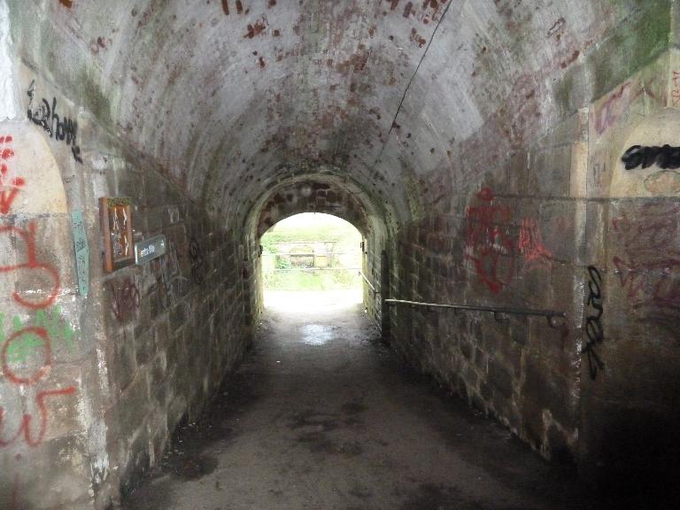 L'accès depuis la caponnière donne dans une courte galerie voûtée qui la prolonge. De celle-ci il est possible de rejoindre la galerie de contrescarpe par deux galeries étroites en plan incliné. Après la jonction avec la galerie de contrescarpe, ces galeries effectuent un virage en épingle à cheveux vers l'intérieur et continuent à monter pour déboucher face à face dans la grande galerie voûtée qui monte en plan incliné depuis le fossé. Cette galerie se scinde en deux branches au milieu du réduit, qui débouchent dans ses flancs au niveau du chemin couvert.