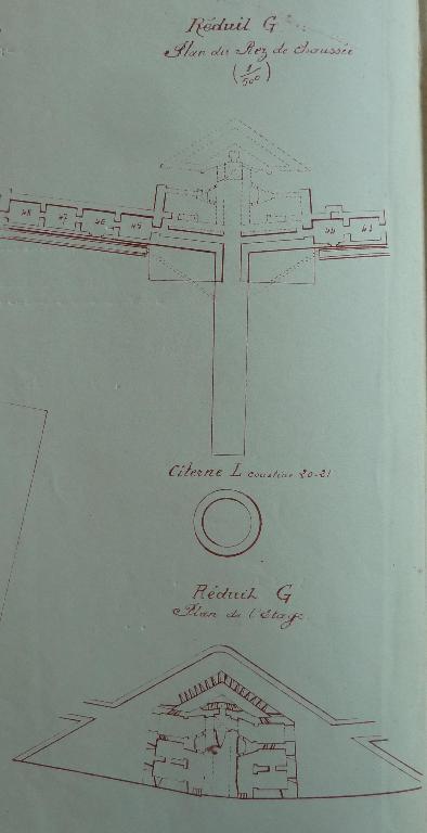 Le réduit G est situé sur le front B-C - ou 20-21- à peu de distance à droite de la porte de Bangor, à la gorge de la place d'armes rentrante du chemin couvert. Il s'organise sur quatre niveaux : sous-sol relié à la galerie de contrescarpe et à la caponnière du fossé, rez-de-fossé où s'ouvre le débouché inférieur de la galerie de circulation, rez-de-chaussée où se situent les casemates de flanquement et les débouchés supérieurs de la galerie de circulation, terrasse avec parapet en terre.