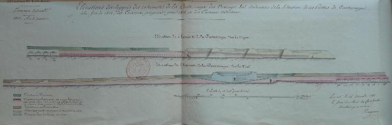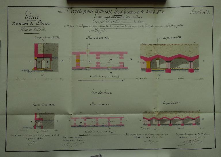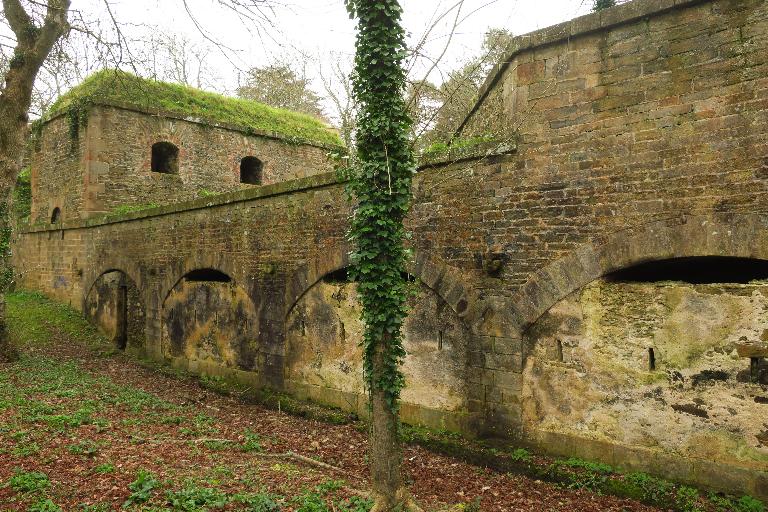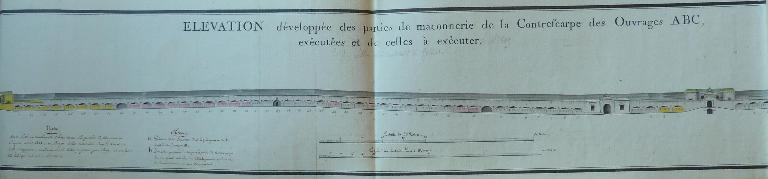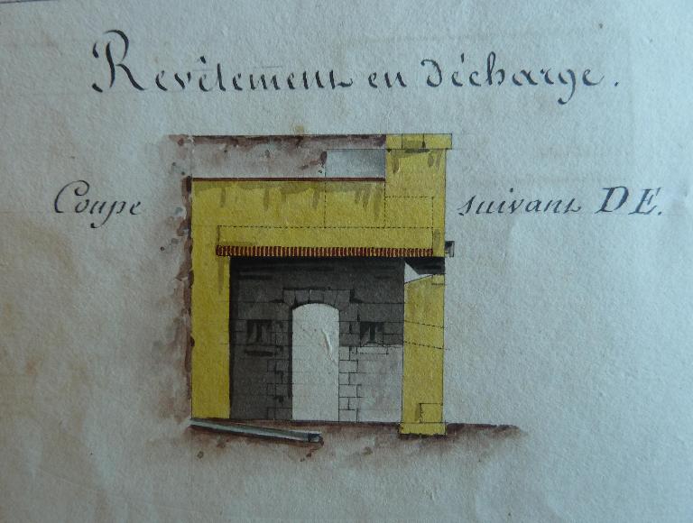 La succession des campagnes de construction peut se lire à travers les matériaux employés et les différences de mise en œuvre. Le souci de lutter contre l'humidité a entraîné le doublement en brique des voûtes et l'emploi de mortiers et d'enduits à base de tuileau. Des canalisations de drainage équipent certaines casemates ainsi que toute la façade de la contrescarpe.