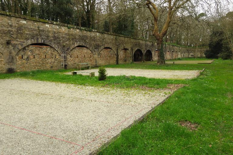 La majeure partie de la galerie est constituée de casemates de petite taille, 4,90 mètres sur 3,30, à voûte en berceau segmentaire formant revêtement en décharge pour la contrescarpe. Elles sont fermées par un mur de masque crénelé de faible épaisseur (50 cm) ne montant pas jusqu'au sommet de la voûte afin de ménager une aération. Les voûtes et leurs piédroits sont en pierres de taille de granite, les murs de masque en maçonnerie de tout-venant, schiste et granite, voire brique. Les casemates communiquent par des portes percées dans les piédroits des voûtes. Ces portes sont munies d'encoches permettant de les barricader au moyen de madriers en cas de besoin. Les murs séparant les casemates sont également percés de créneaux de tir. Les casemates situées au saillants des bastions, en particulier les bastions 20 et 21, sont dotées d'une amorce de galerie de mine dans leur mur de fond. Ce dispositif concerne 6 casemates devant le bastion 19, 29 devant le bastion 20 et 21 devant le bastion 21. Une seule de ces galeries est véritablement creusée, dans la casemate située au saillant du bastion 20. Elle est inondée pratiquement depuis son creusement.