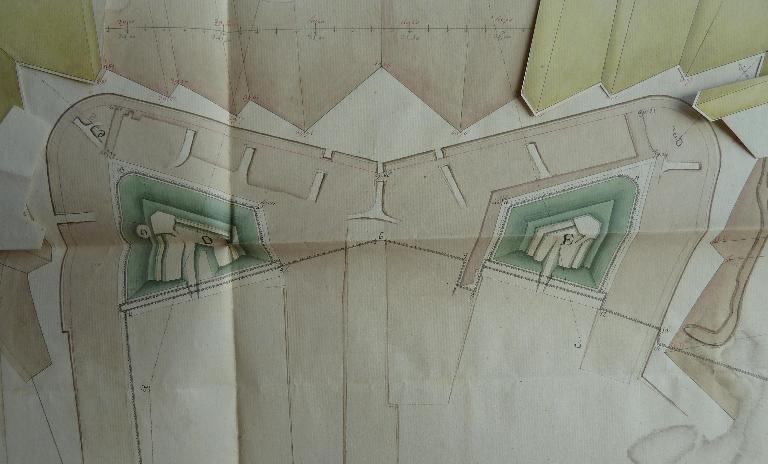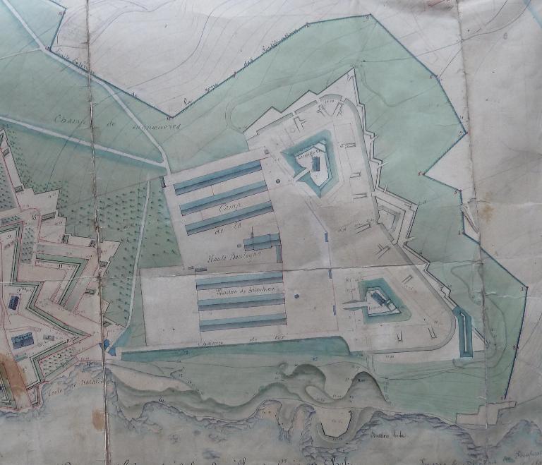 Les lunettes D et E apparaissent peu dans les projets des années 1820 à 1860. Le camp de détention de Haute Boulogne est construit entre elles et la citadelle entre 1848 et 1850.