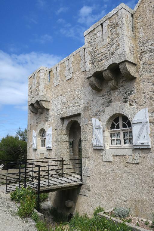 Au point d'intersection de la côte exposée à l'E.N.E., avec la portion du littoral qui regarde l'O., s'avance dans la mer un promontoire que l'on nomme la pointe des Poulains. Sur la gauche de ce cap s'étend une plage de sable, dont l'entrée est difficile ; mais qui mérite cependant d'être surveillée, parcequ'elle est assez plate et assez large. La batterie de la pointe des Poulains n'est pas destinée à cet objet. Elle se compose de deux batteries peu éloignées l'une de l'autre ; la 1re située au point le plus saillant du promontoire, la 2e en arrière sur la partie élevée du plateau. Ces deux ouvrages n'auraient d'autre but que d'offrir la protection de leur canon aux bâtiments venant de l'O. Mais les récifs qui entourent la pointe des Poulains, s'étendant dans certaines directions jusqu'à 1800 mètres en mer, cette protection ne pouvait être que fort lointaine et par conséquent, inefficace. En conséquence, la Commission propose de supprimer les deux batteries de la pointe des Poulains ; mais comme les plages de débarquement de cette presqu'île, pourraient offrir aux entreprises de l'ennemi les avantages dont il a été question à l'occasion du Vieux Château, la Commission place un poste garde-côtes, corps de garde défensif n° 2, sur l'isthme du rocher qui sépare les deux petites plages de débarquement.