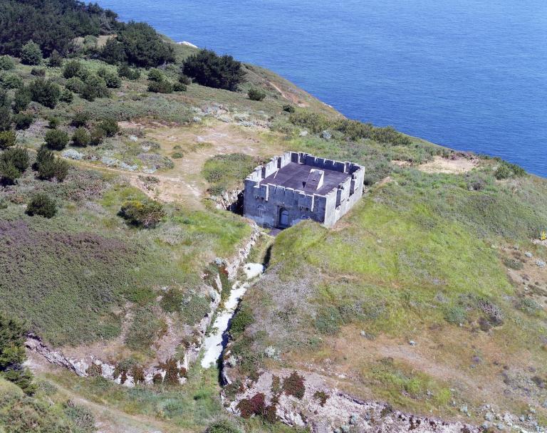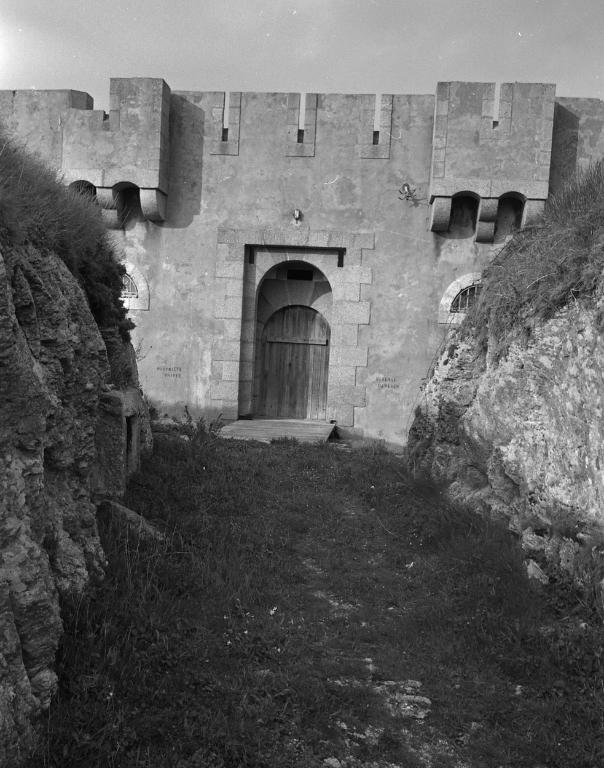 Précision dénominationcorps de garde crénelé servant de réduit à une batterie d'artillerie de côte, corps de garde défensif