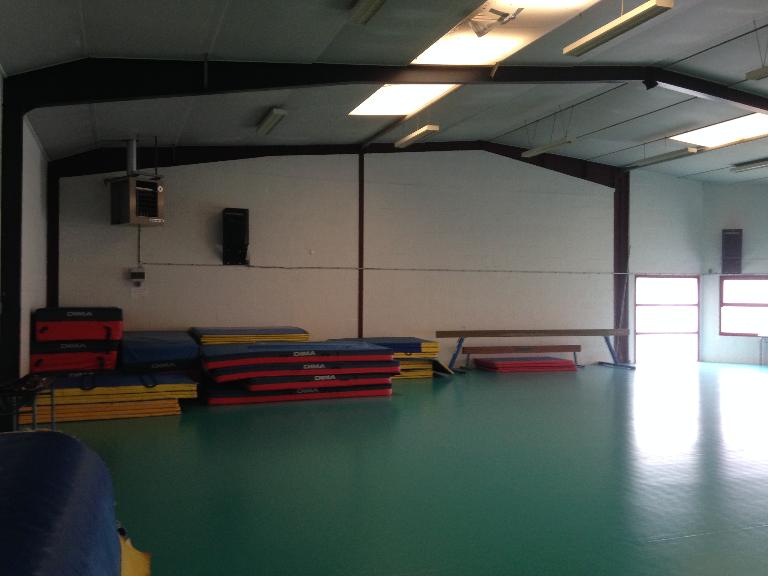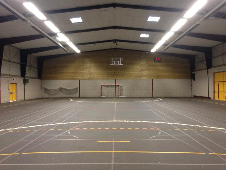 L'équipement dit K2 construit en 1993 se compose d'une salle de jeux collectifs de 36 x 25 x 7 m, d'une salle de gymnastique de 16,50 x 18 x 4 m, d'une salle de classe de 8,80 x 6 x 2,80 m, de vestiaires, sanitaires, rangements et circulation. Les murs sont en agglomérés et bardage de tôle, la couverture en tôle laquée. La salle dite K1, reconstruite en 2005, mesure 48 x 28 m et a été conçue comme un "gymnase blockhaus", où la distribution des espaces rend visible l'ensemble des salles, alliant "éléments de sécurité et aspects fonctionnels".