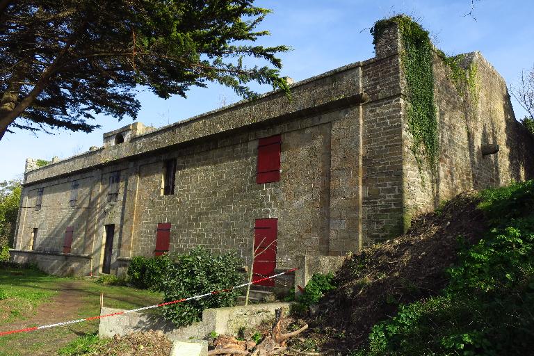 Les circonstances locales amènent cependant les ingénieurs à choisir parfois de construire des casernes casematées de rempart, notamment pour des ouvrages pouvant être attaqués de plusieurs côtés à la fois (fort de Quélern, projets pour le fort central d'Ouessant). Une grande caserne casematée est construite au milieu des années 1840 entre les deux bastions de la nouvelle enceinte de l'Harteloire à Brest.