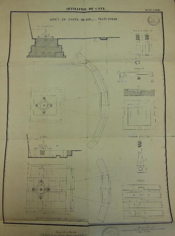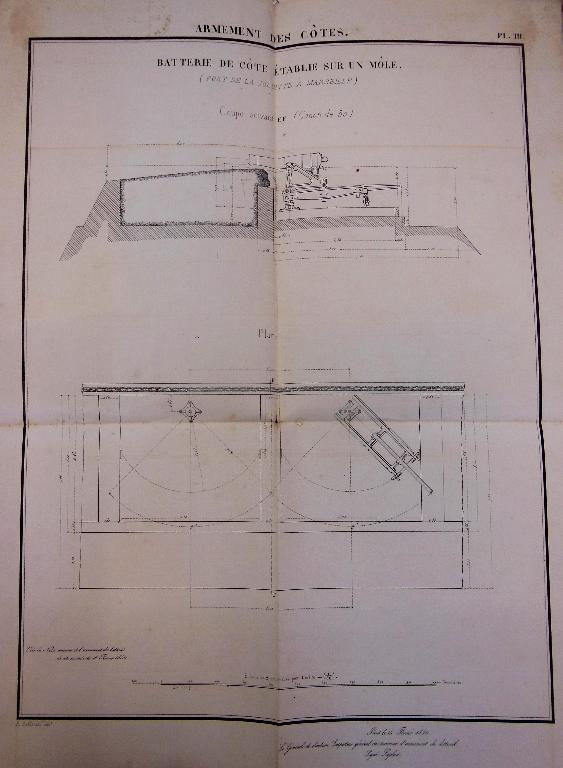 (Service historique de la Défense, département Armée de Terre, Vincennes. Archives du Génie ; Article 12, Avis du Comité : 1 VK 40, Mémoires généraux sur les frontières maritimes, 1802-1852. Ministère de la Guerre, Instruction sur l'armement et la défense des côtes, 30 décembre 1845, p. 14-20)