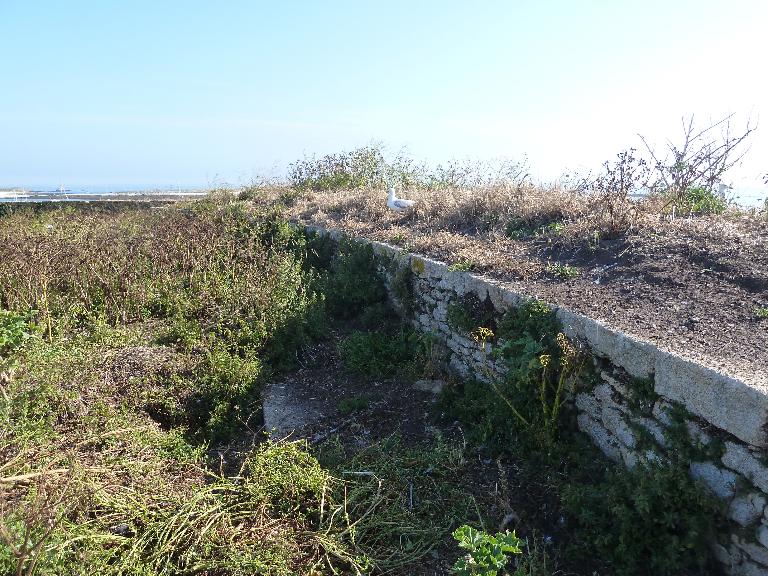 Si la position est très-importante à occuper, consolider le terrain contre la mer par une bonne jetée, et contre les vents par un semis qu'on laisse pousser à l'état de taillis, ou par une estacade dont les claires-voies sont garnies de roseaux, de joncs ou de bruyères et autres plantes que les localités fournissent.