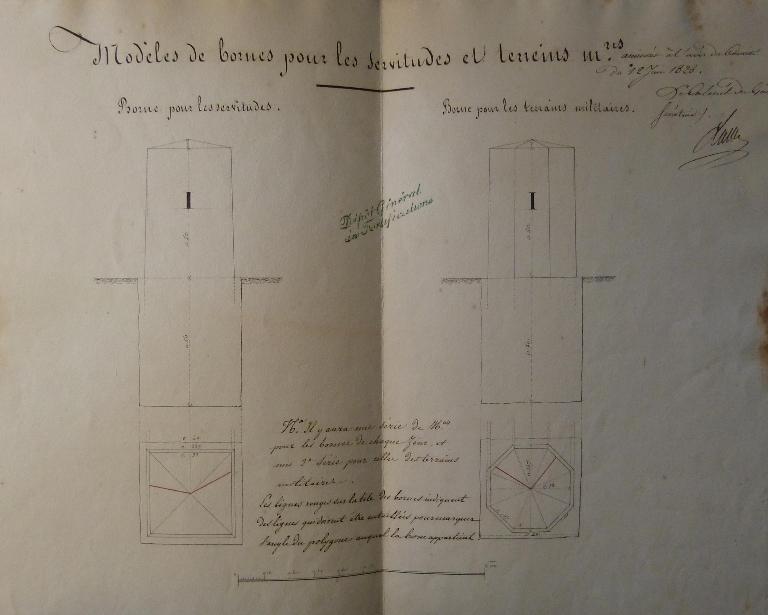 Ce changement, du reste, ne devra pas dispenser d'entrer en conférence avec le service des Ponts et Chaussées à l'effet de faire décider en Commission mixte des Travaux Publics qu'on pourra entourer le bâtiment du phare d'un mur qui en sera distant de 3m00 et aura 2m00 au plus de hauteur avec un fossé de quatre mètres de profondeur au moins sur 4m00 de largeur au fond.