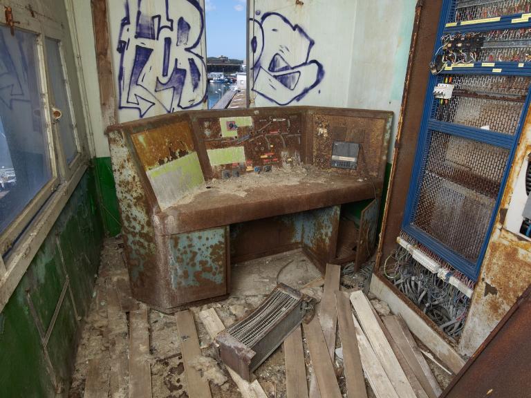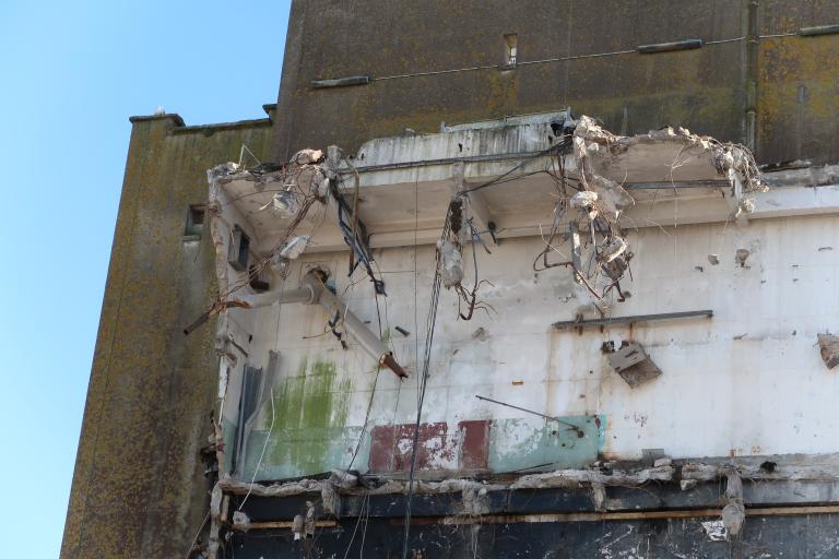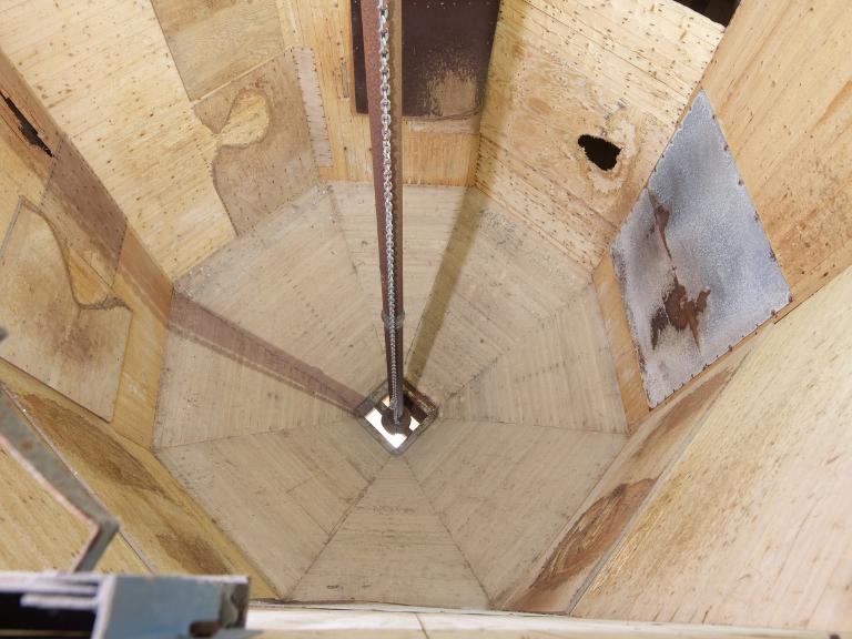 Les 4 ascenseurs situés aux angles du bâtiment permettent la manutention de plate-formes qui depuis le rez-de-chaussée vers les étages de traitement amènent le poisson.