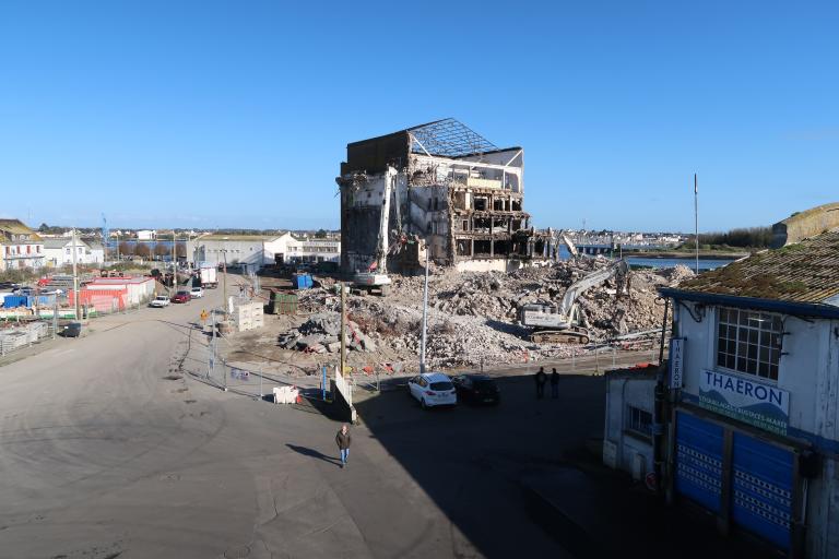 Le frigorifique est le point de départ du développement du nouveau port né de la volonté de l’État : travaux de remblaiement, digues, quais, criée, môle d'approvisionnement en charbon, magasins de mareyeurs et voies ferrées structurant l'ensemble.