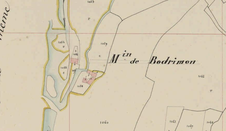 Le moulin est construit probablement au 18e siècle. La partie ouest a été soit reconstruite, soit fortement modifiée au milieu du 20e siècle. Le logis situé sur la rive est, figuré sur le plan cadastral de 1842, a également été remanié au 20e siècle.