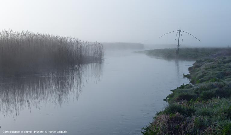Le golfe du Morbihan comporte également des témoignages d’une pratique de pêche apparue plus tardivement, la pêche au carrelet. L’apparition du carrelet est difficile à dater mais le mot, avec l’orthographe de “quarlet”, date de 1360 environ(8). Les premiers carrelets servent pour la pêche à pied, puis sont progressivement installés en poste fixe à quelques mètres du rivage. Sur le territoire du Parc naturel régional du Golfe du Morbihan, quelques installations fixes sont encore lisibles dans le paysage, le long des méandres de la rivière du Loch. Les premiers, en bois, ont été réalisés par les cheminots d'Auray à partir du milieu du 19e siècle pour répondre à un besoin de complément alimentaire. Une autorisation de posséder un carrelet était demandée auprès des Affaires maritimes par les familles. Les carrelets étaient installés sur la rive, mais quelques pêcheurs en équipaient l’arrière de leurs petits bateaux. Anguilles, plies, mulets, bars, crevettes, etc. étaient ainsi attrapés dans les mailles resserrées du filet. Après 1940, la pêche au carrelet retrouve sa fonction de moyen de subsistance. Aujourd’hui neuf carrelets, présentant différents états de conservation, sont observés le long de la rivière du Loch : trois côté Pluneret, six côté Brech. Quelques-uns, constitués de parties en bois et/ou métal et d'un filet amovible, sont encore utilisés ponctuellement pour une activité de loisir.