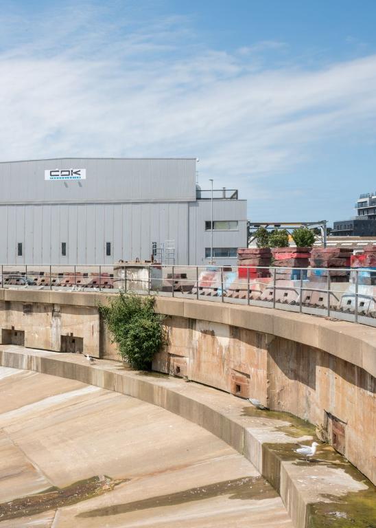Pour se fondre dans le paysage et échapper aux bombardements, les bunkers du slipway sont camouflés par des zébras de peinture. Si deux sous-marins peuvent être protégés sous les voûtes des dom-bunkers, ils restent vulnérables aux attaques aériennes lorsqu'ils sont hissés sur la rampe ou utilisent le pont tournant du slipway. Les installations du port de pêche demeurent très sensibles aux effets des bombardements aériens.