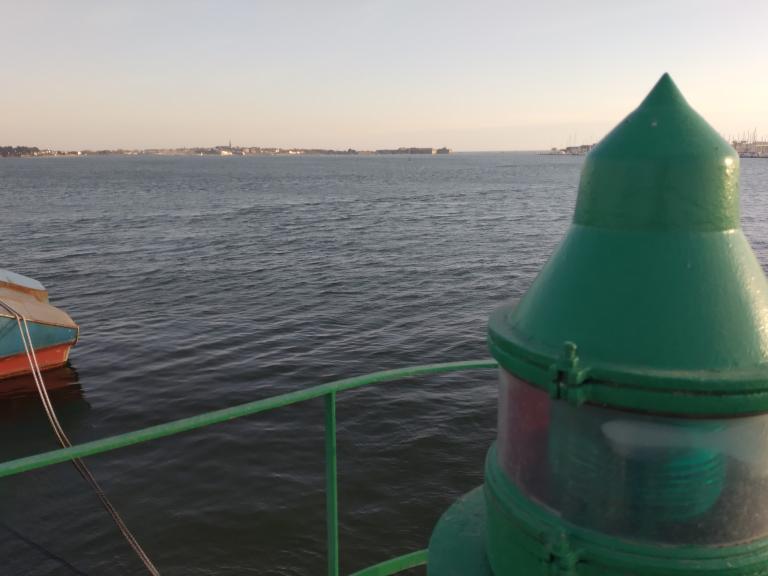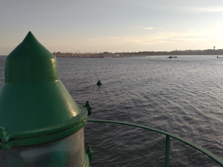 A l’extrémité du quai, le feu tribord marque l’entrée du port de pêche. De couleur verte et blanche, il domine la rade et offre un panorama à 360 degrés, dégageant un paysage remarquable qui intègre l’intérieur du port de pêche, la presqu’île de Keroman, la rive gauche de la rade et l’île Saint-Michel en premier plan.