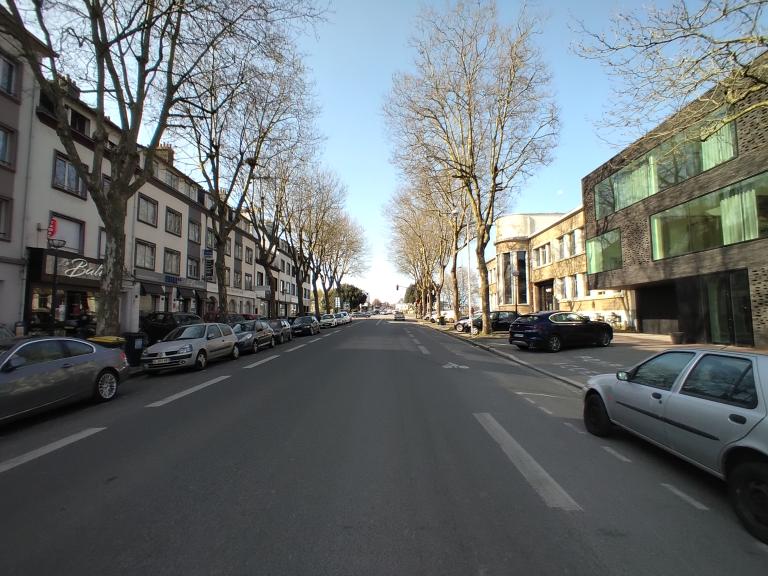 C’est le long de la chaussée centrale que tout s’organise. La route est bordée par des places de stationnement adjacentes, d’une contre allée et d’une piste cyclable. Les espaces de cheminements piétons se caractérisent par de larges trottoirs, sur lesquels s’installent des terrasses de restaurants et de cafés. L’alignement de platanes sépare la chaussée de la zone piétonne, reprenant l’allée de tilleuls qui bordait l’avenue Sainte-Catherine auparavant.