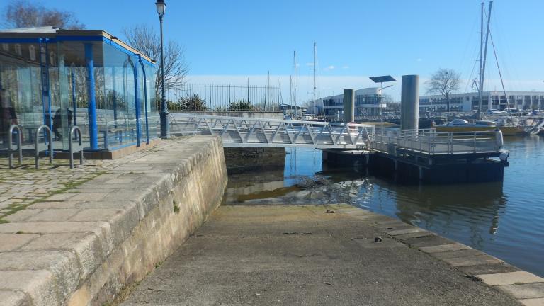 Un pont levant équipé d’une porte écluse tournante sépare le bassin à flot de l’avant-port. Sur l’emplacement de l’ancienne partie du bassin à flot qui a été comblée, se dresse le bâtiment du palais des Congrès ainsi qu’un miroir d’eau.